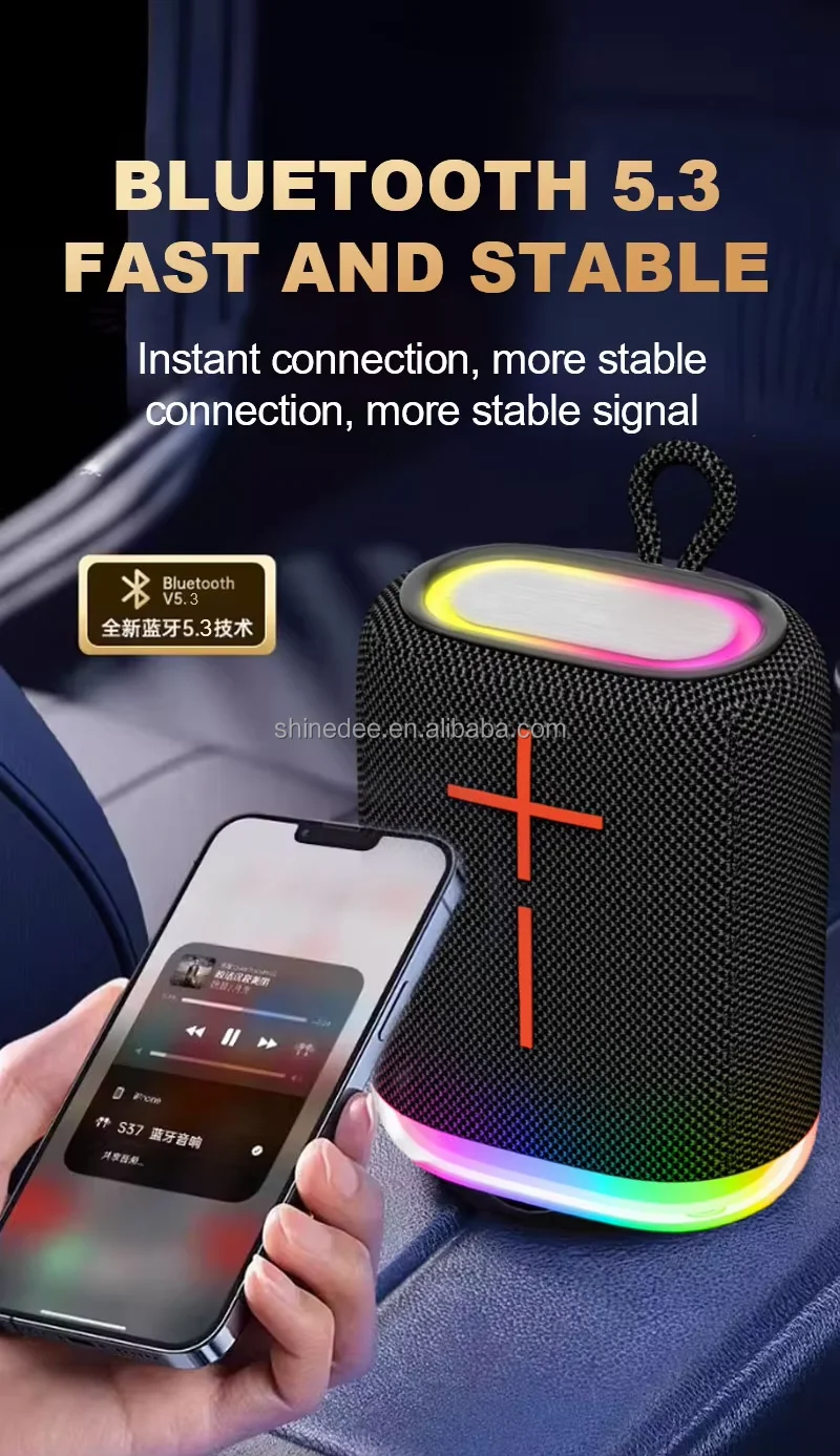 Function | New Customizable Portable Bluetooth Loud Deep Bass Cool Shocking RGB Lighting Outdoors Fashion Fabric Support OEM Logo Speaker |