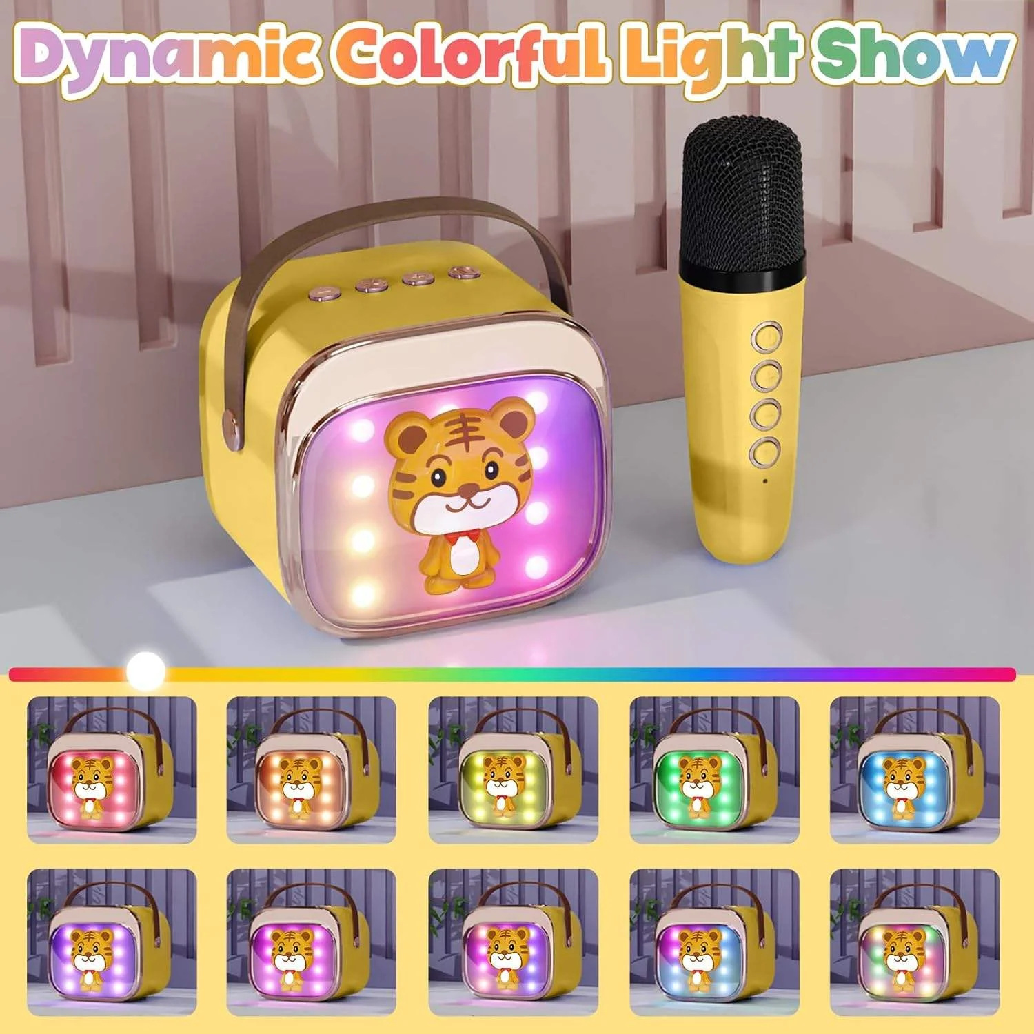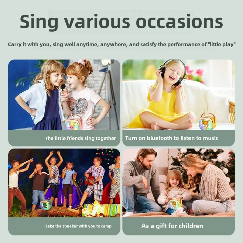 Product Name | Cute Full RGB LED Light Wireless Rechargeable Sound Karaoke Mini Karaoke Speaker Set up for Phone Singing Kids with Microphones | ||||||