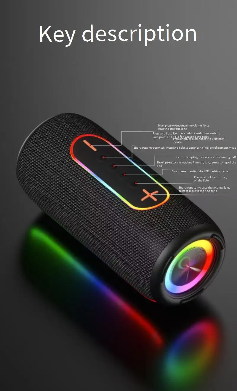 Product Name | High-quality Sound Waterproof 20W Wireless Speaker Deep Bass RGB Lights TWS for Party 3600mAh Battery, TF/AUX/USB for Outdoor | ||||||